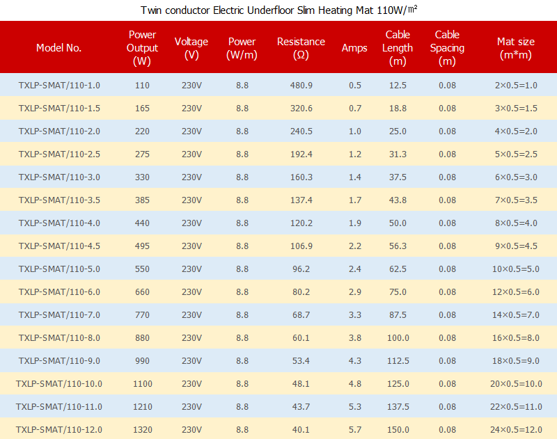 110 W/㎡ Ultra Thin Underfloor Heating Mat System